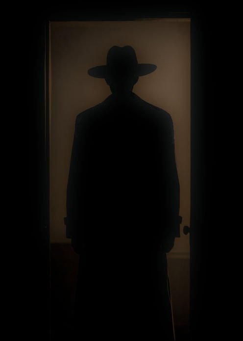 Appearance: A tall, dark, featureless silhouette with a distinctive wide-brimmed hat (fedora, top hat) and often a long coat or cape.